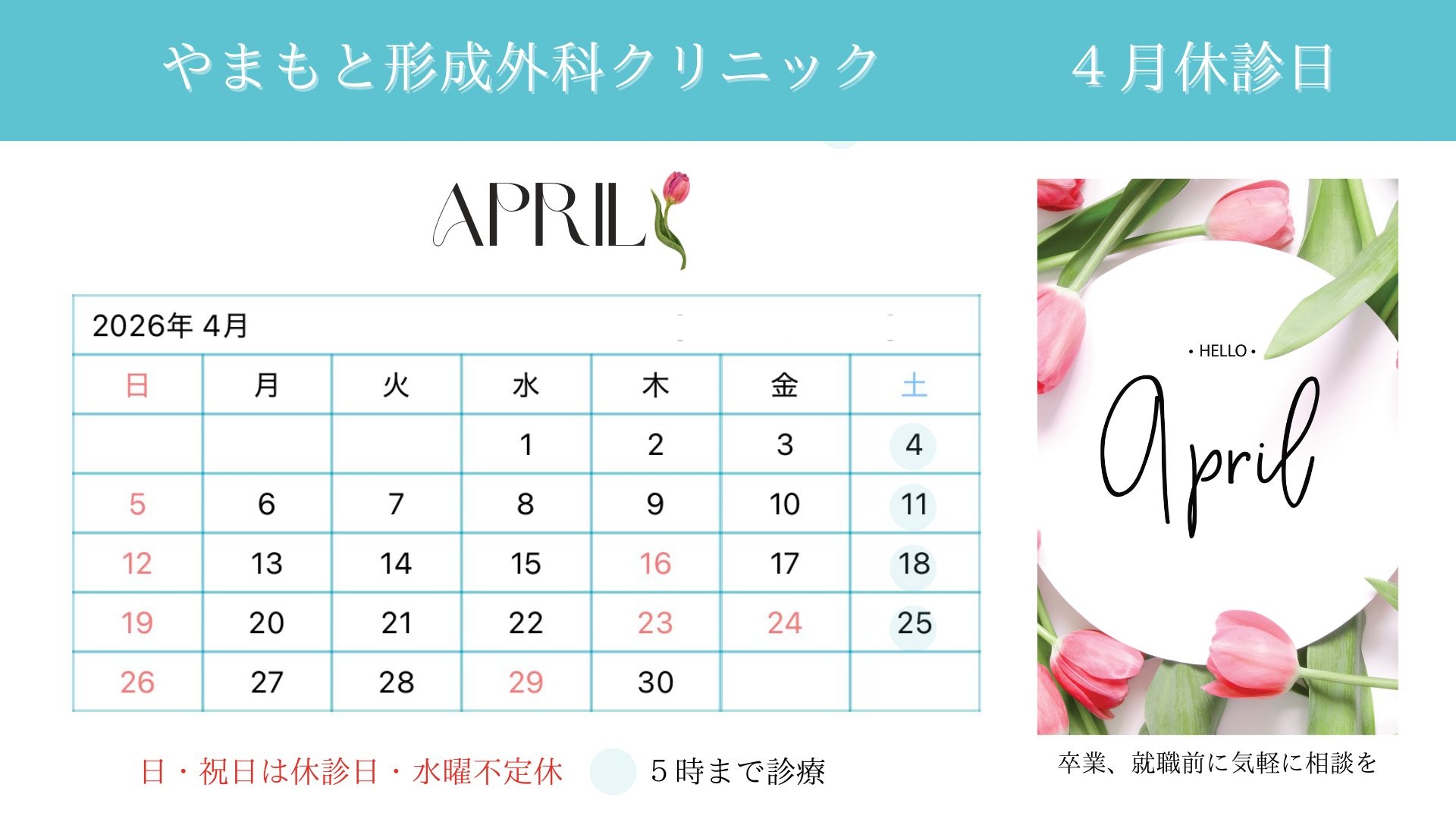【休診案内】2026年4月の休診スケジュールをお知らせします。